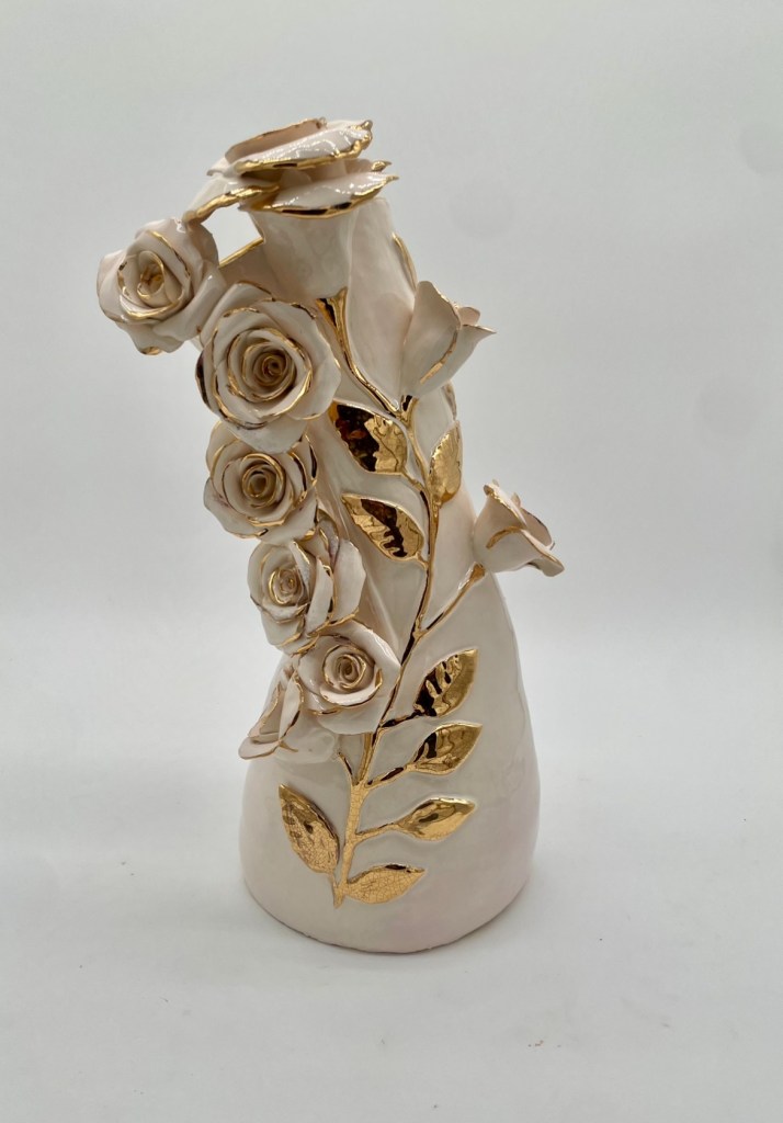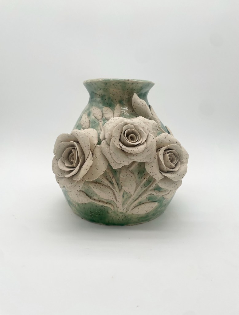 Erica Kendrick’s FiredPetalsStudio bridges softness and strength, heritage and innovation. Her hand-built ceramic sculptures—roses, crowns, and hat vessels—feature metallic charcoal, rich glazes, and floral patterns that reflect Black culture, memory, and resilience. Erica’s art reinterprets feminine adornment as powerful monuments to Black womanhood, blending cultural storytelling with artistic mastery. Her background as an art educator and community leader enriches each piece’s impact beyond sculpture to legacy.